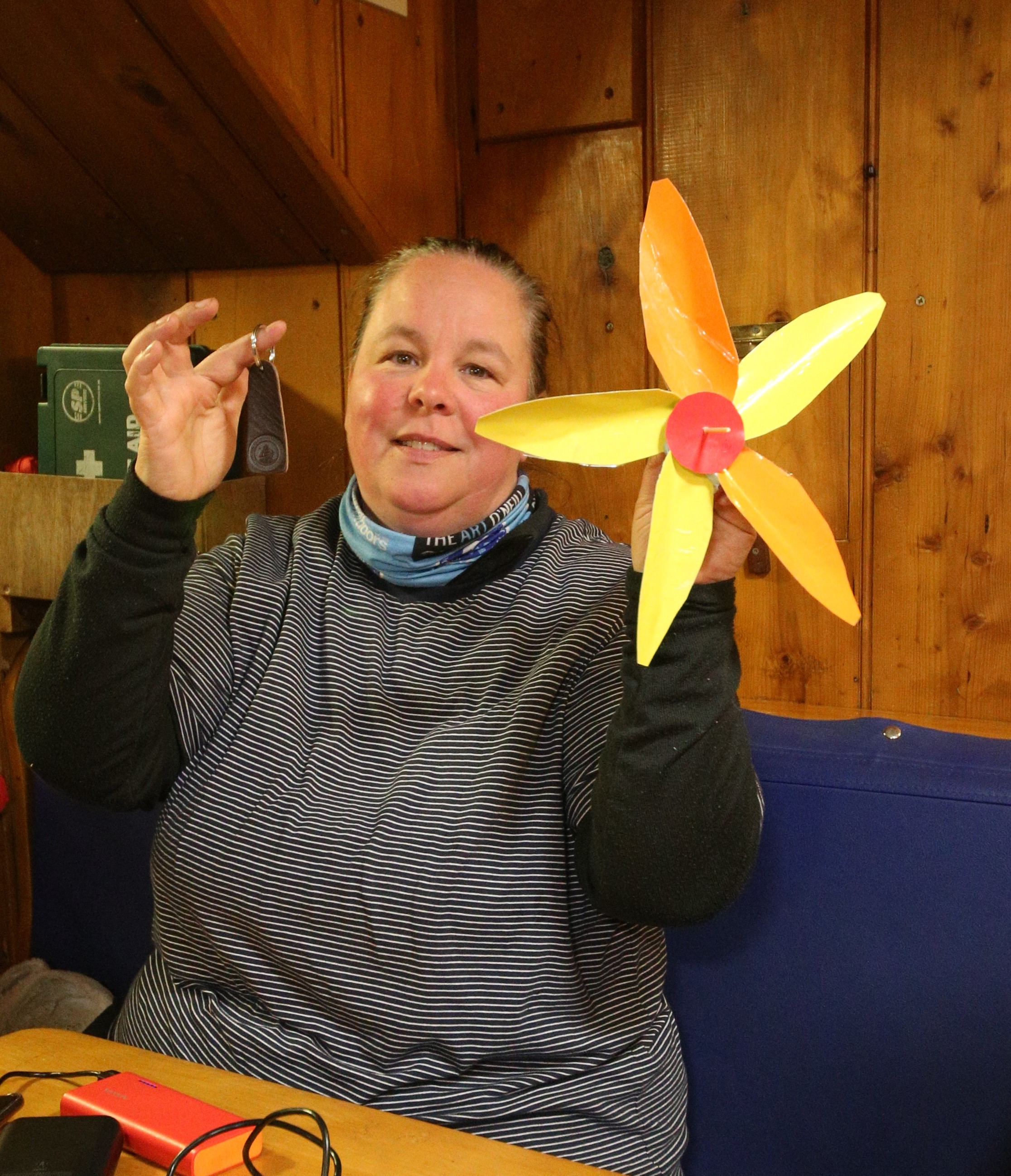 Harnessing the wind was also the theme of last night’s engineering game: the wind turbine design competition, where our young trainees worked in teams to construct a set of blades mounted on a cork that would drive a dynamo in a breeze. The ‘breeze’ came from my hair dryer (its sole use for several years).
