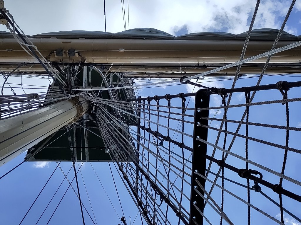 Now, I love it. I climb to work on the yards and climb to the top for the view. I even work on ladders. I overcame my half-century old fear of heights on the tall ship Pelican of London.