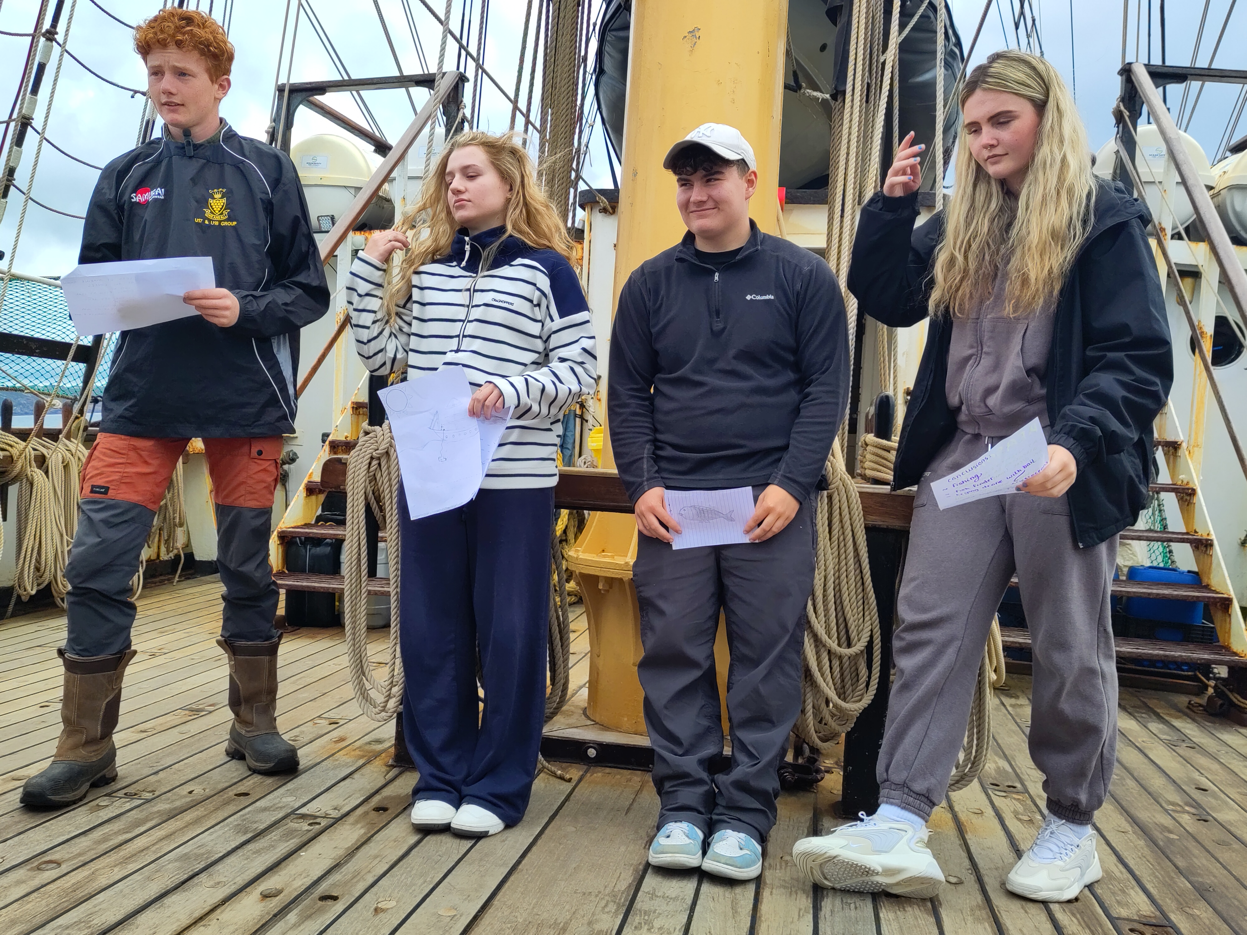Some of our trainees presenting their findings on the welldeck of Pelican of London.