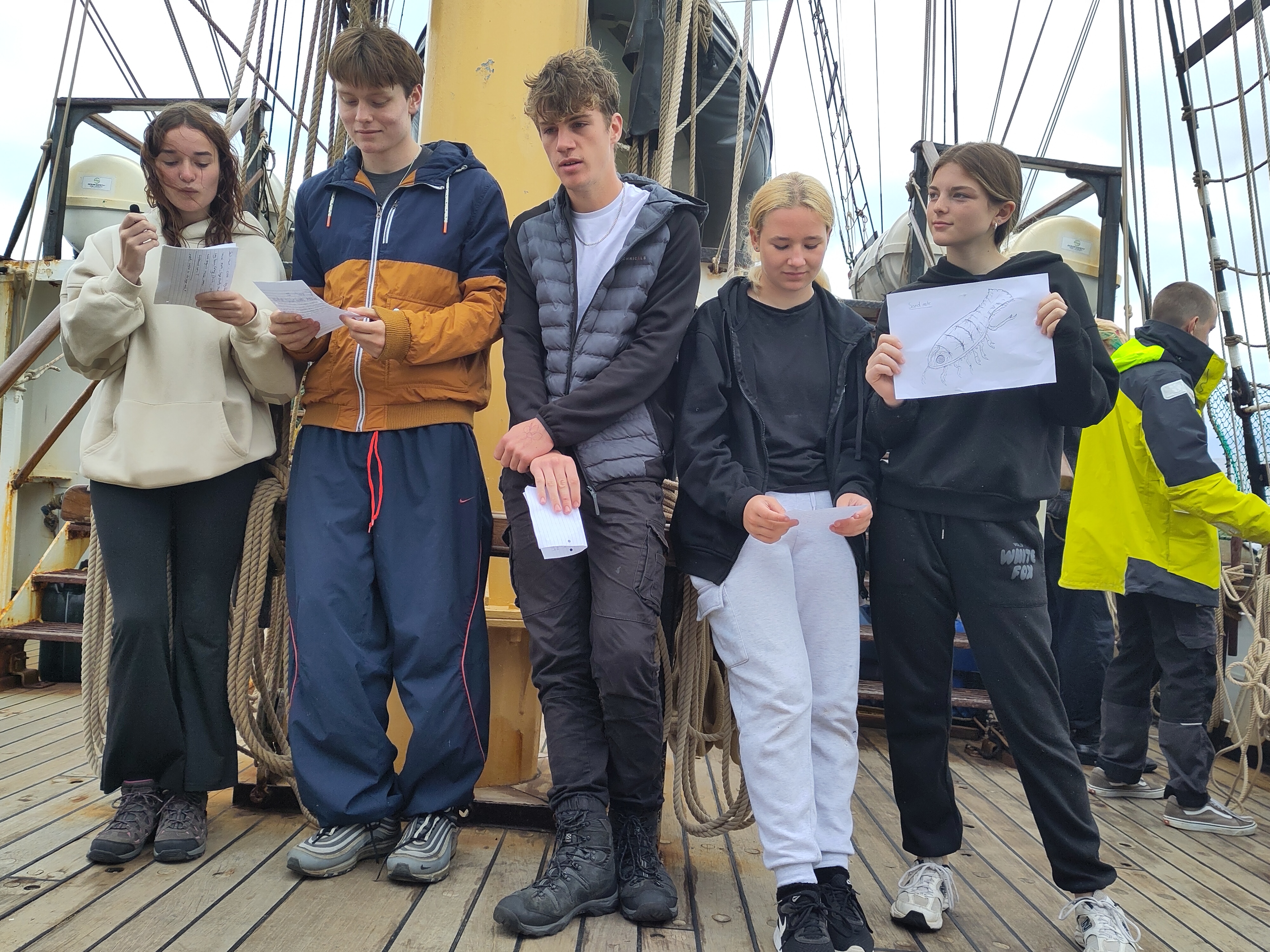 - Project sand: One group studied the composition of sand in detail to find out similarities and differences in appearance, texture, composition, salt content and microplastics between the low and high water line on the beach.