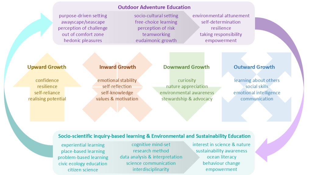 One of the most exciting findings of this study is the synergy between traditional sail training practices and marine science education. Both elements reinforce each other, creating a powerful cycle of growth and learning. Trainees report improved confidence, resilience, and social skills, alongside a deeper connection to the marine environment and signs of developing a desire for ocean conservation. These synergies are summarised in the figure below.