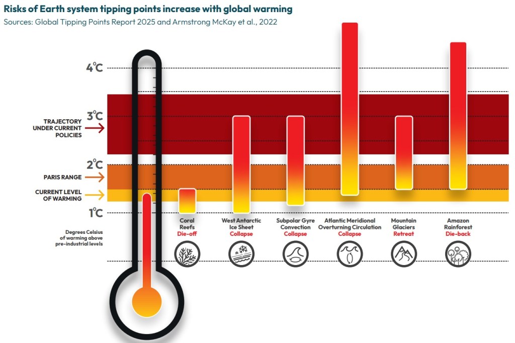 [3] Lenton TM, Milkoreit M, Willcock S et al. (eds). 2025. The Global Tipping Points Report 2025. University of Exeter, Exeter, UK. online https://global-tipping-points.org/.