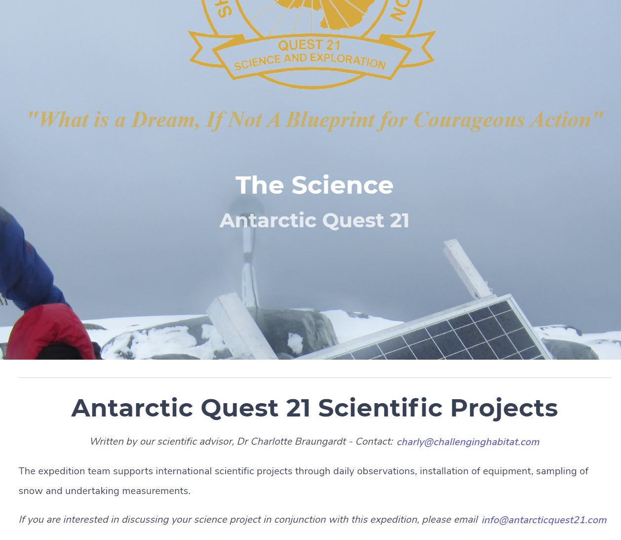 - 2020 – 2022: Scientific Advisor to Expedition Antarctic Quest 21